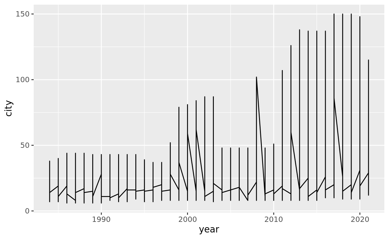 ggplot(epa_data[epa_data$year==1990,],aes(city))+